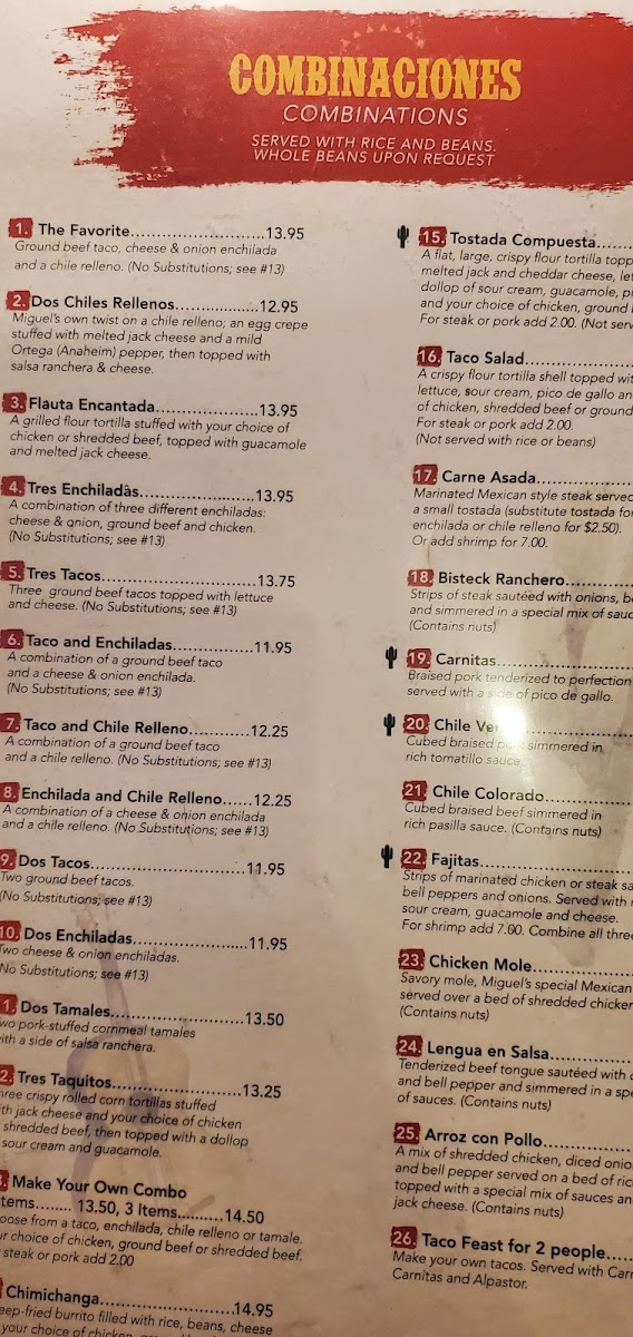 With a dedicated team proficient at managing large parties, Miguel's makes sure that every guest feels attended to, regardless of the occasion. One review described a large gathering of ten that was handled with ease, showcasing the restaurant's commitment to excellent service and ensuring that each dish is a blockbuster. Whether you’re here for casual dining or a special celebration, the staff, including attentive waiters like Markus, strive to elevate your dining experience.